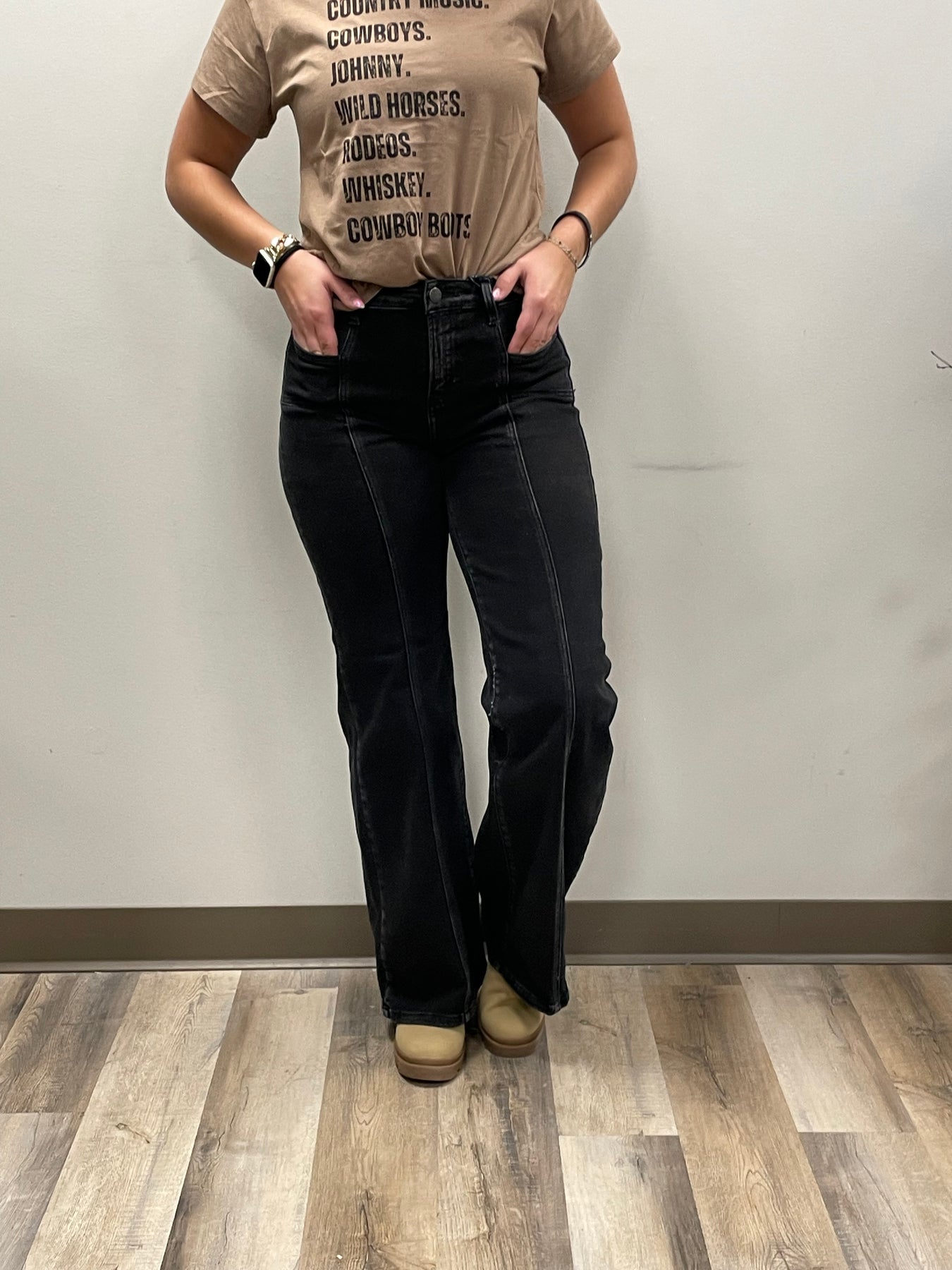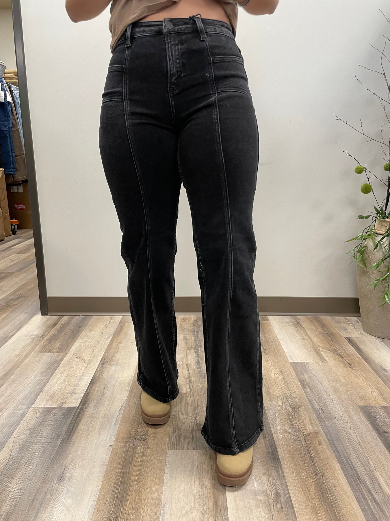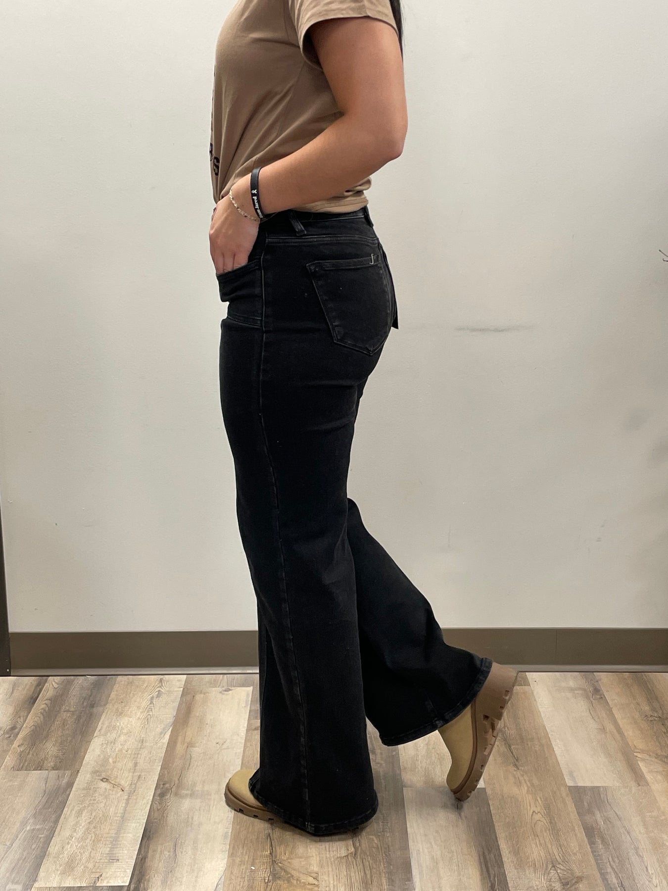Step into effortless style with the RISEN Front Patch Pocket Jean in black. Featuring a bold wide-leg cut, these jeans offer a comfy, roomy fit that moves with you. The front patch pockets add a touch of cool, casual flair while keeping your essentials close. Perfect for making a statement while staying cozy, these jeans bring playful vibes to your everyday wardrobe.