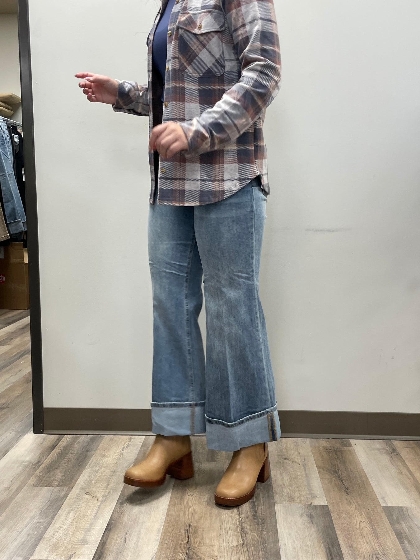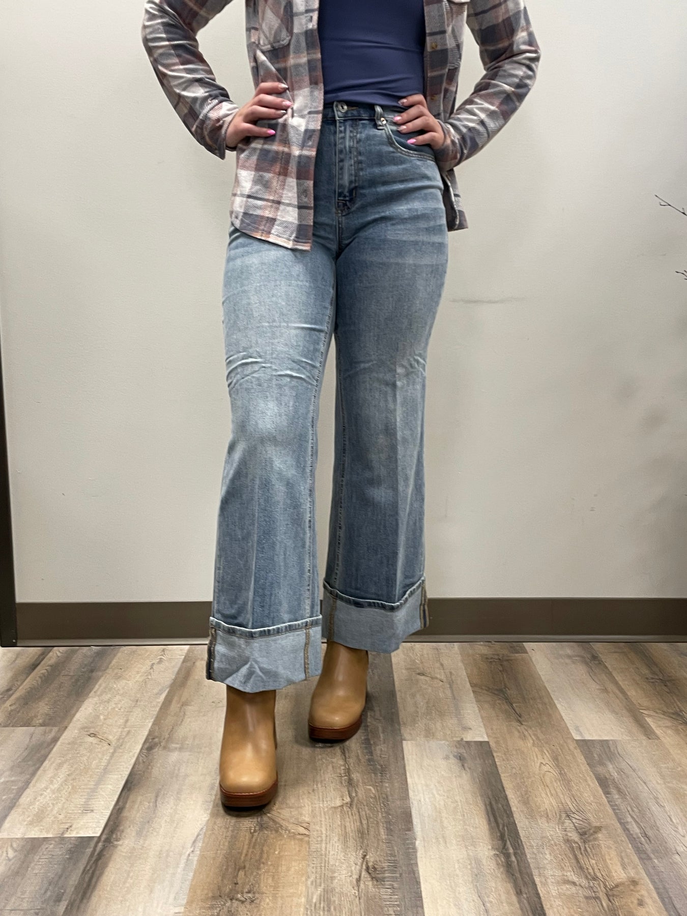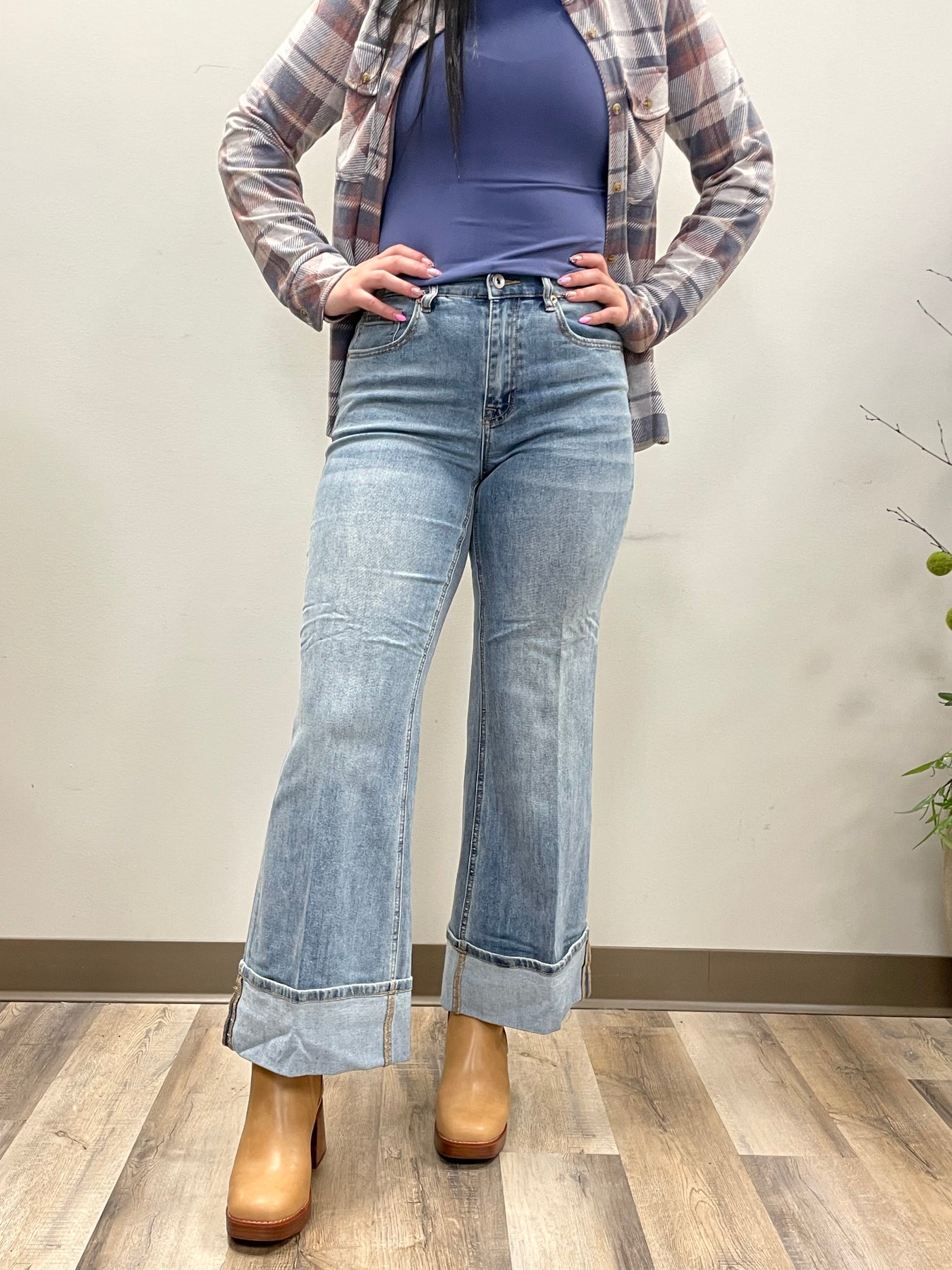 BROOKE PALAZZO JEAN CUFFED | WASHED BLUE