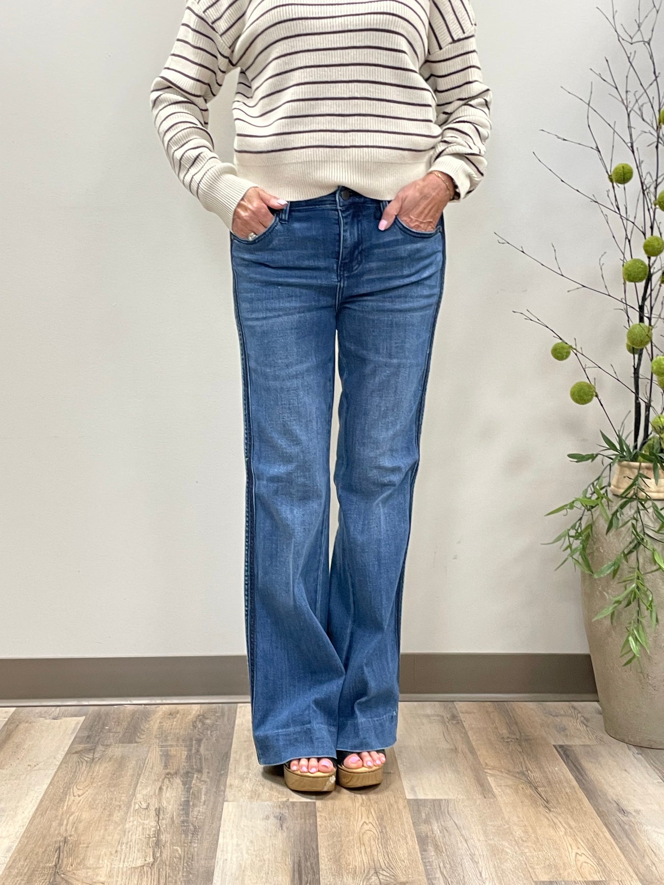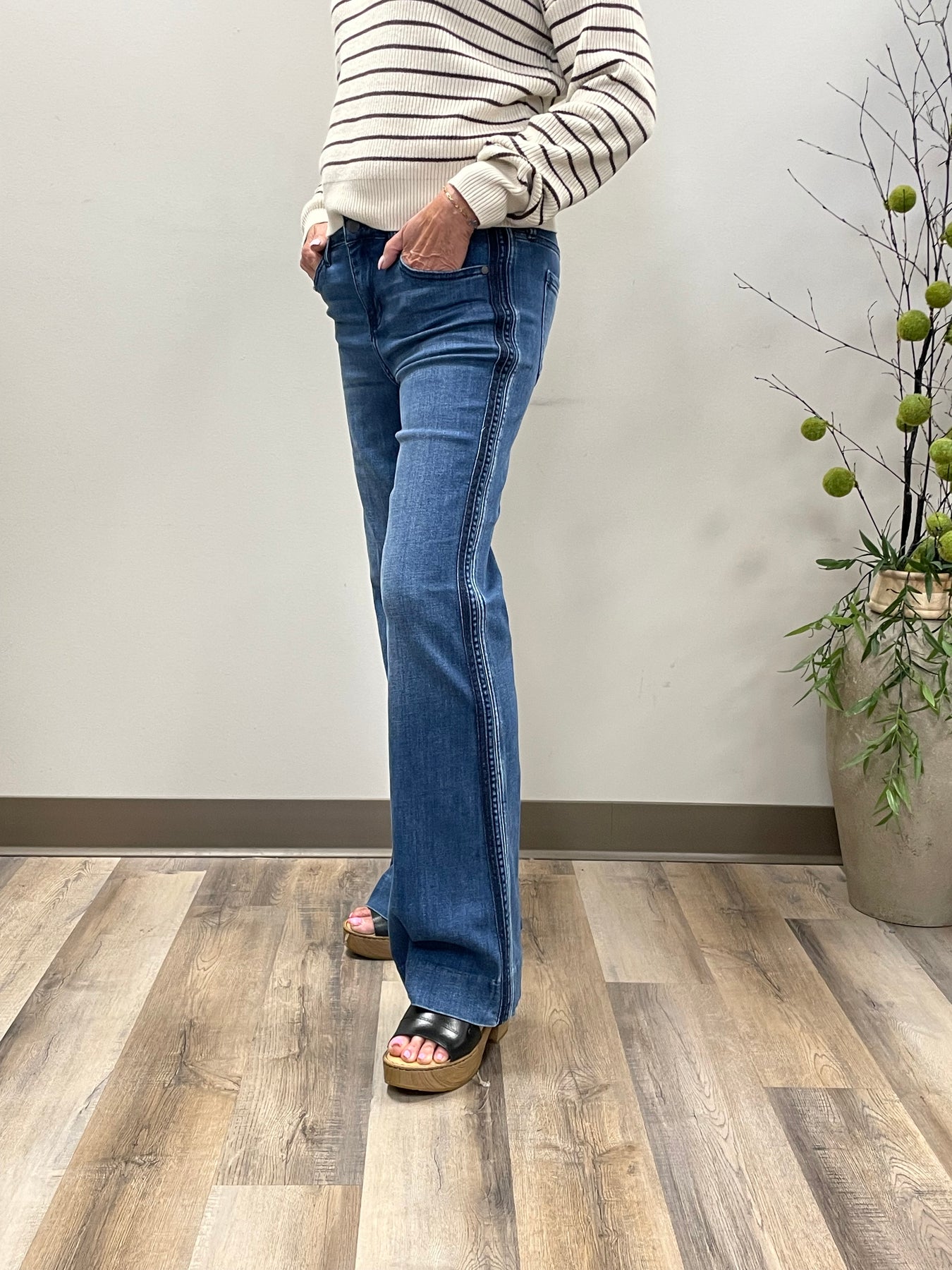 Step out in style with the LIVERPOOL HANNAN FLARE, featuring a playful side trim that adds a fun twist to your outfit. This design brings a lively touch to classic flare, making every step feel full of personality and charm. Perfect for turning heads with a subtle, flirty detail!