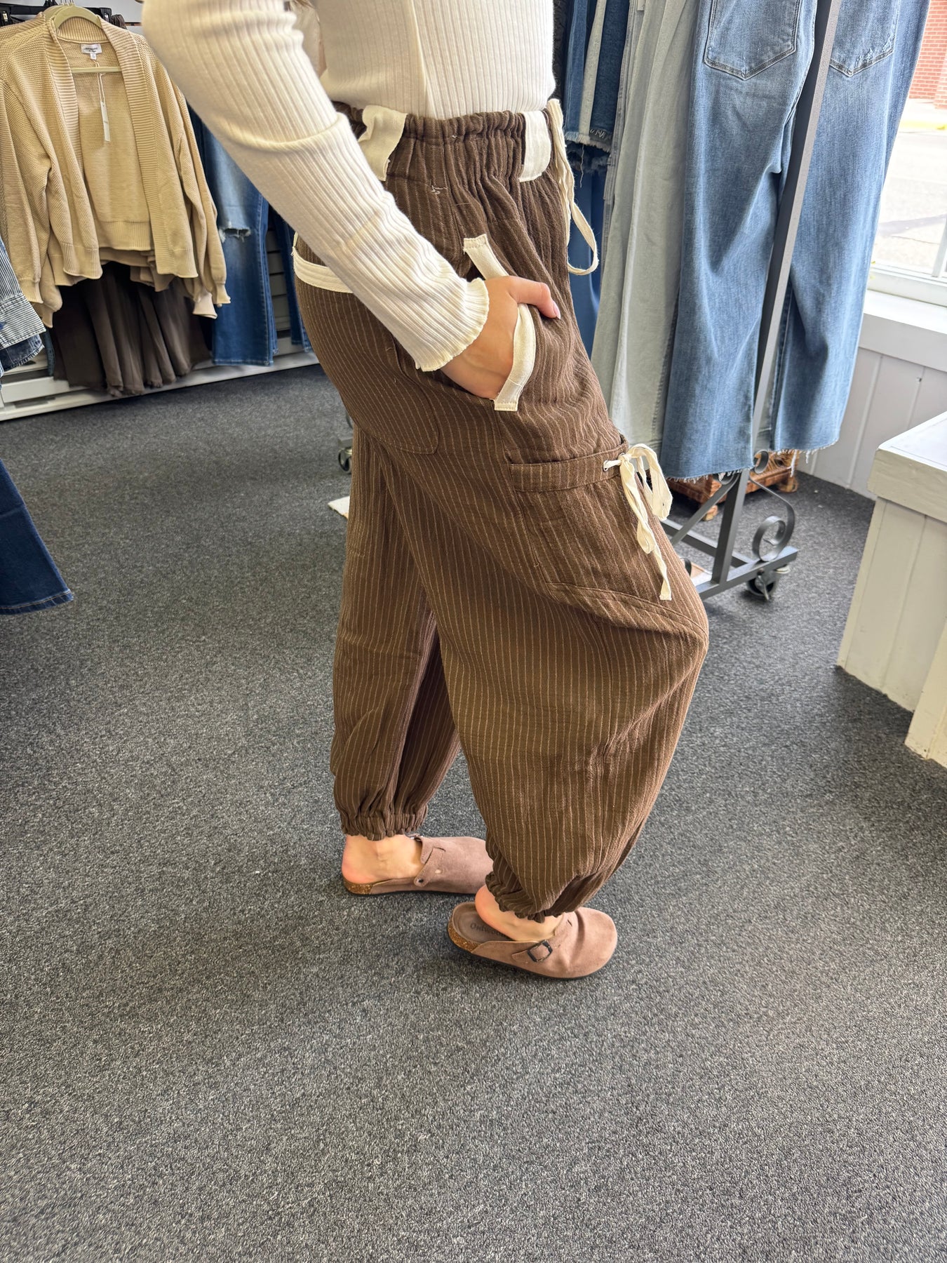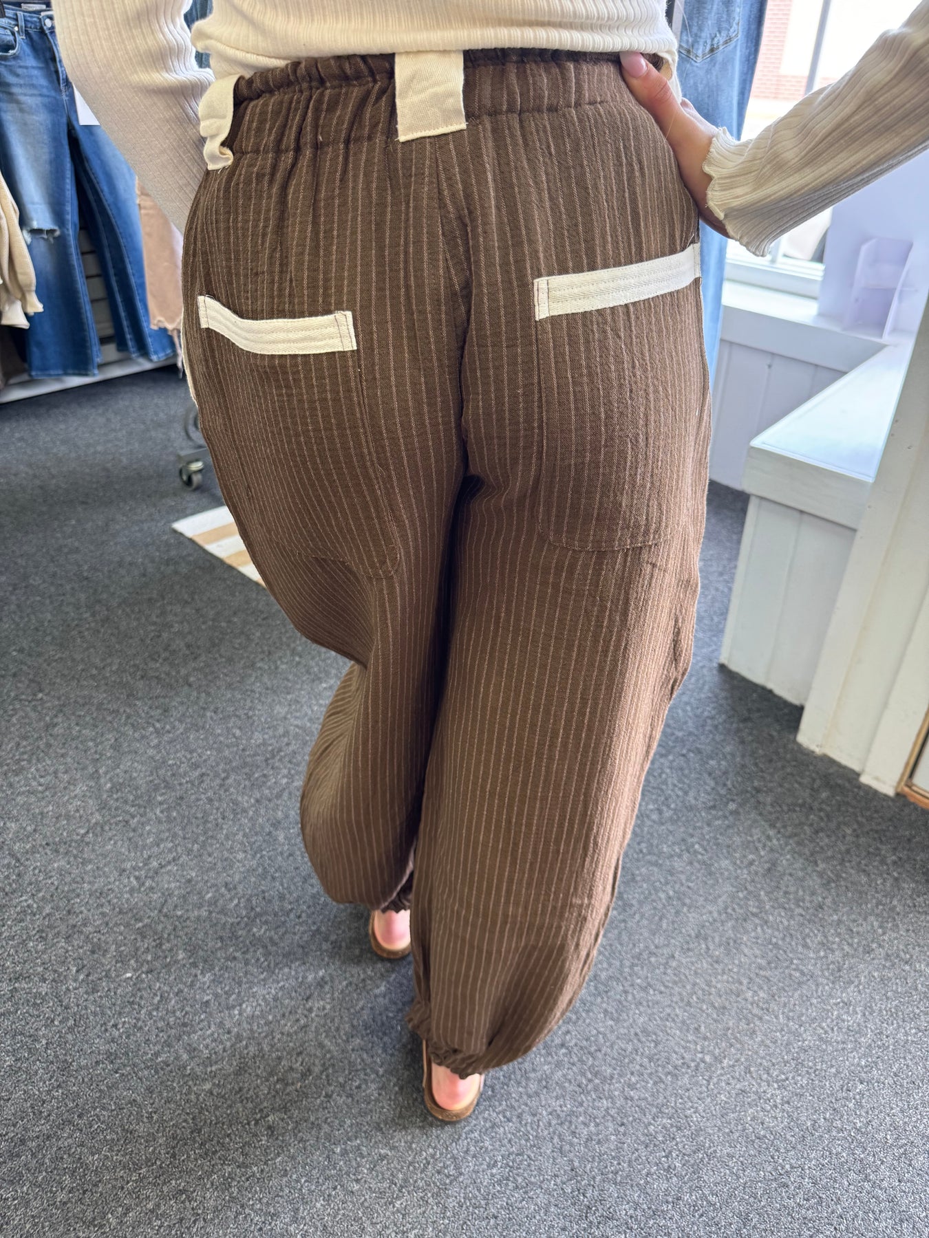 Experience the perfect blend of comfort and style with the Striped Jogger Pant in Chocolate. Expertly crafted for a relaxed yet polished fit, these pants feature subtle stripes for a contemporary edge. Designed with soft, breathable fabric, they provide all-day comfort whether you're at home or out on the town. The elastic waistband ensures a secure, adjustable fit, making them ideal for versatile wear in your everyday wardrobe.