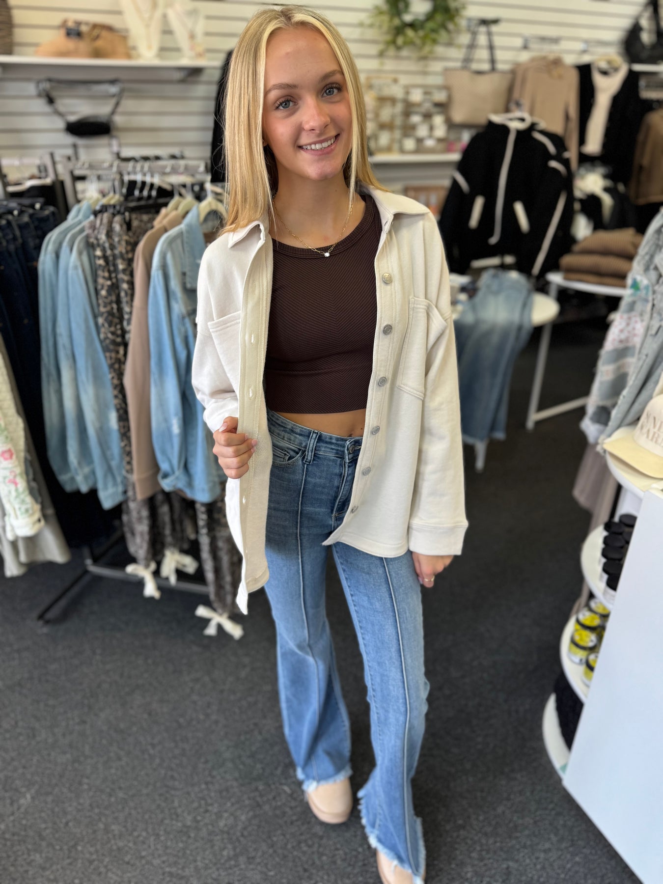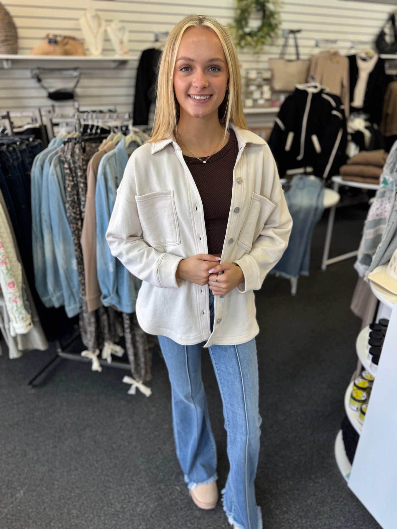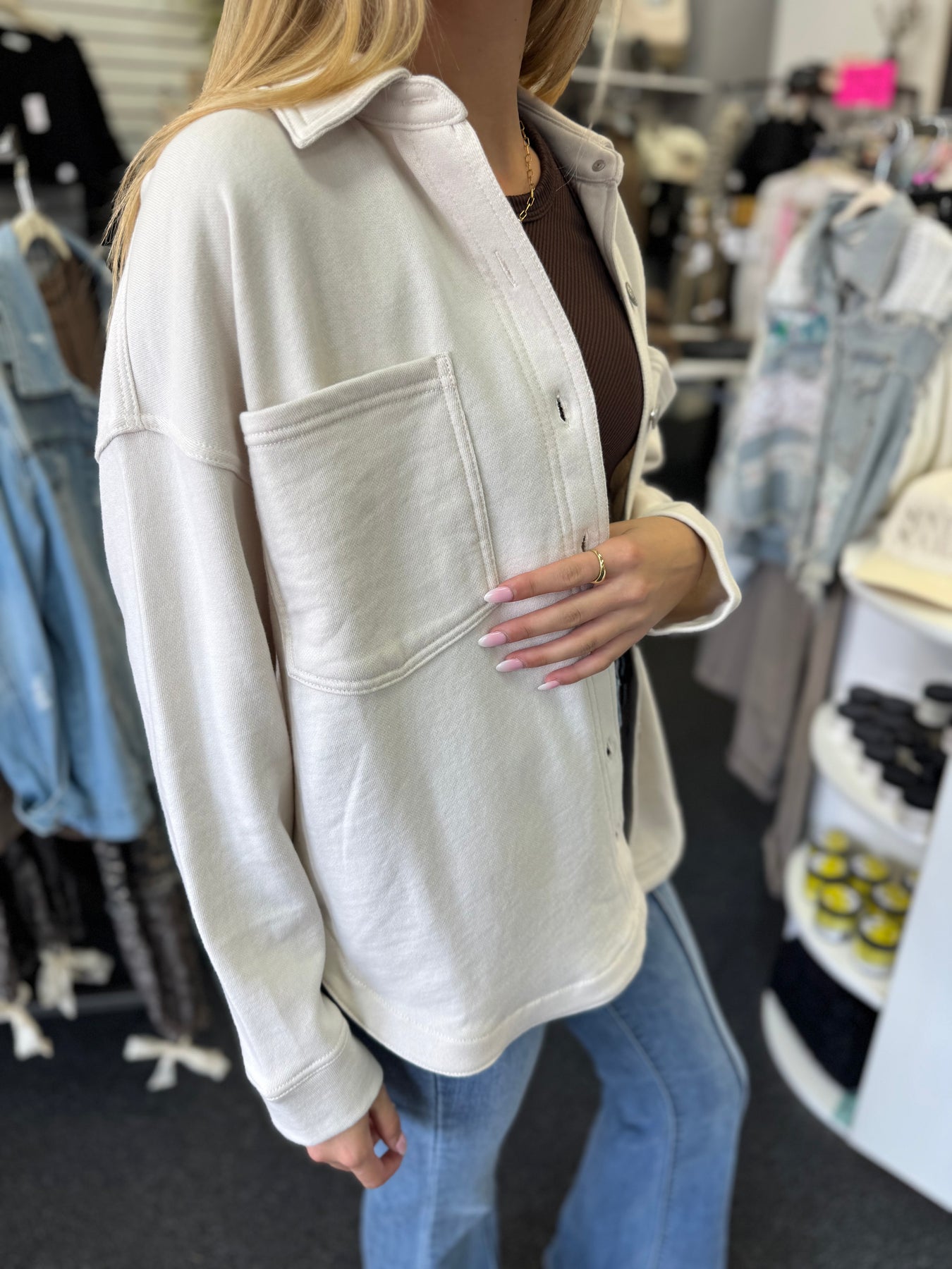 The All Day Knit Jacket in Crystal is an expertly crafted oversized layering piece designed for comfort and style. Its relaxed fit makes it ideal for adding warmth without bulk, while the versatile crystal hue complements any outfit. Perfect for transitioning between seasons, this jacket provides effortless layering with a sophisticated touch.