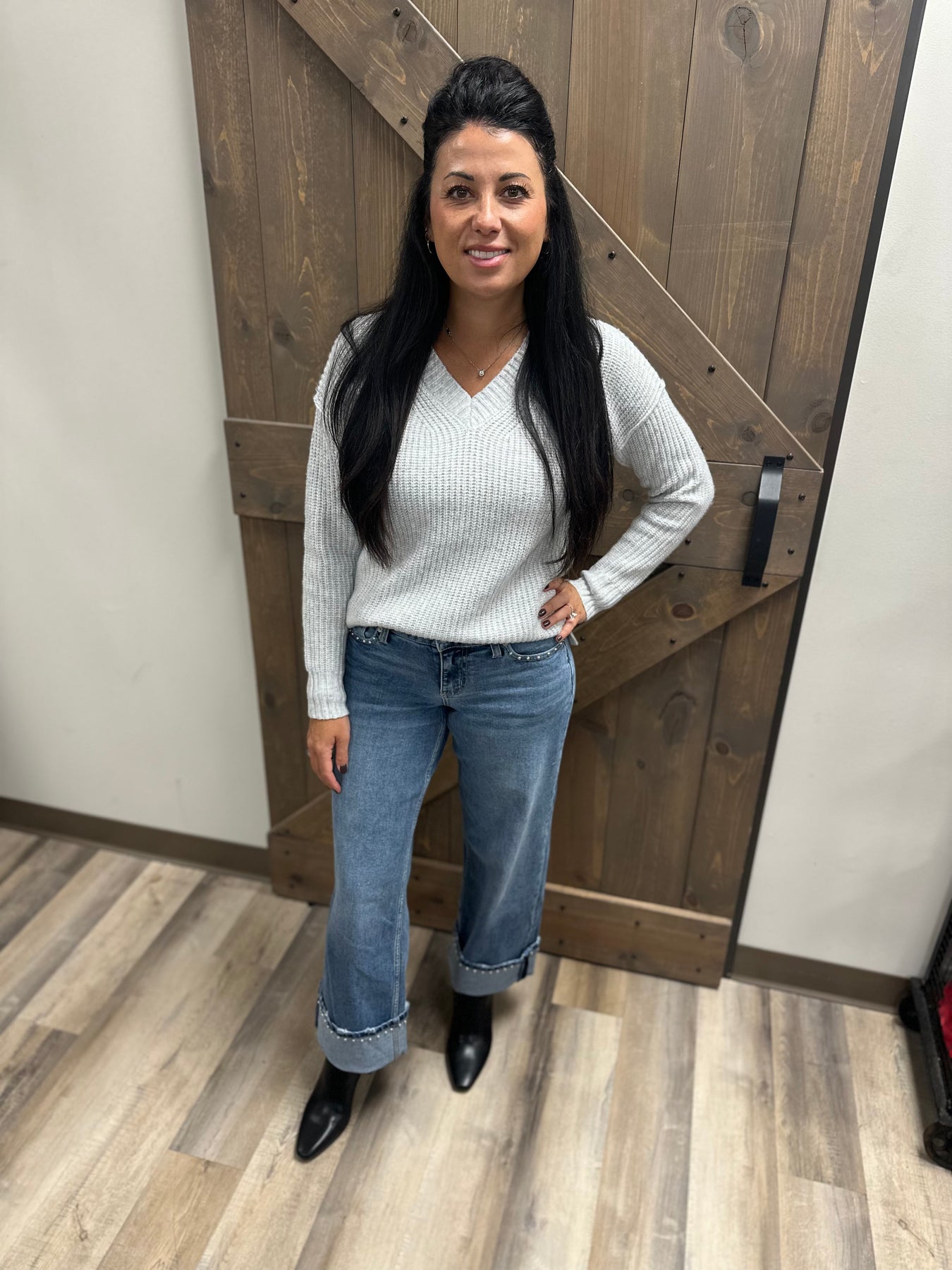 This light grey chunky pullover sweater features a classic V-neck design that combines timeless style with cozy comfort. Crafted for warmth and durability, it layers effortlessly over your favorite outfits, making it a versatile addition to any wardrobe. The textured knit offers subtle sophistication, while the soft fabric ensures all-day wearability. Ideal for both casual and semi-formal settings, this sweater balances functionality with refined craftsmanship.