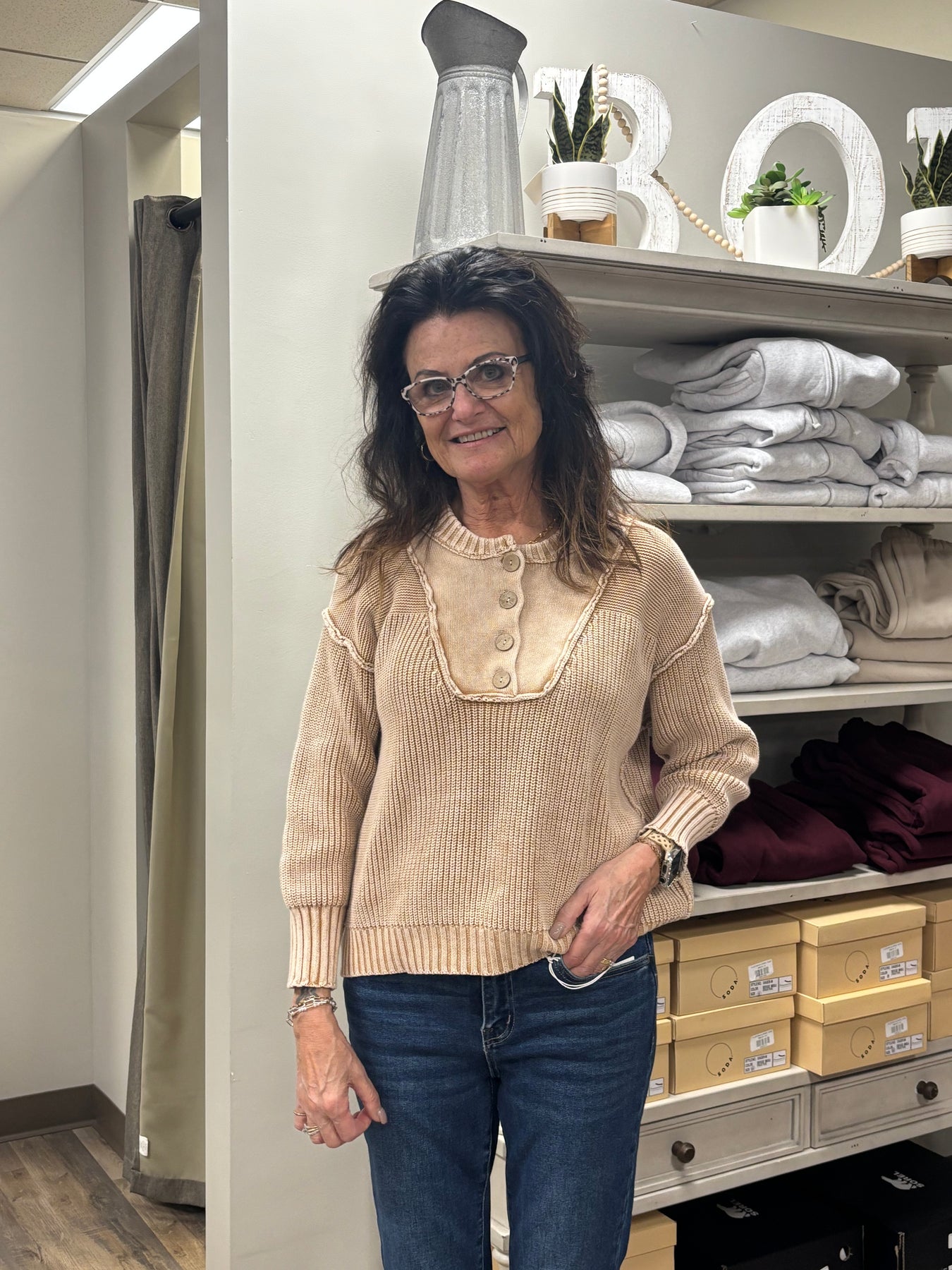 Crafted from premium knit fabric, this pullover sweater delivers effortless sophistication in a versatile washed walnut tone. The relaxed silhouette provides comfortable everyday wear while maintaining a polished appearance. Perfect for layering or wearing solo, this essential piece transitions seamlessly from casual to refined settings. Quality construction ensures durability and lasting shape retention.