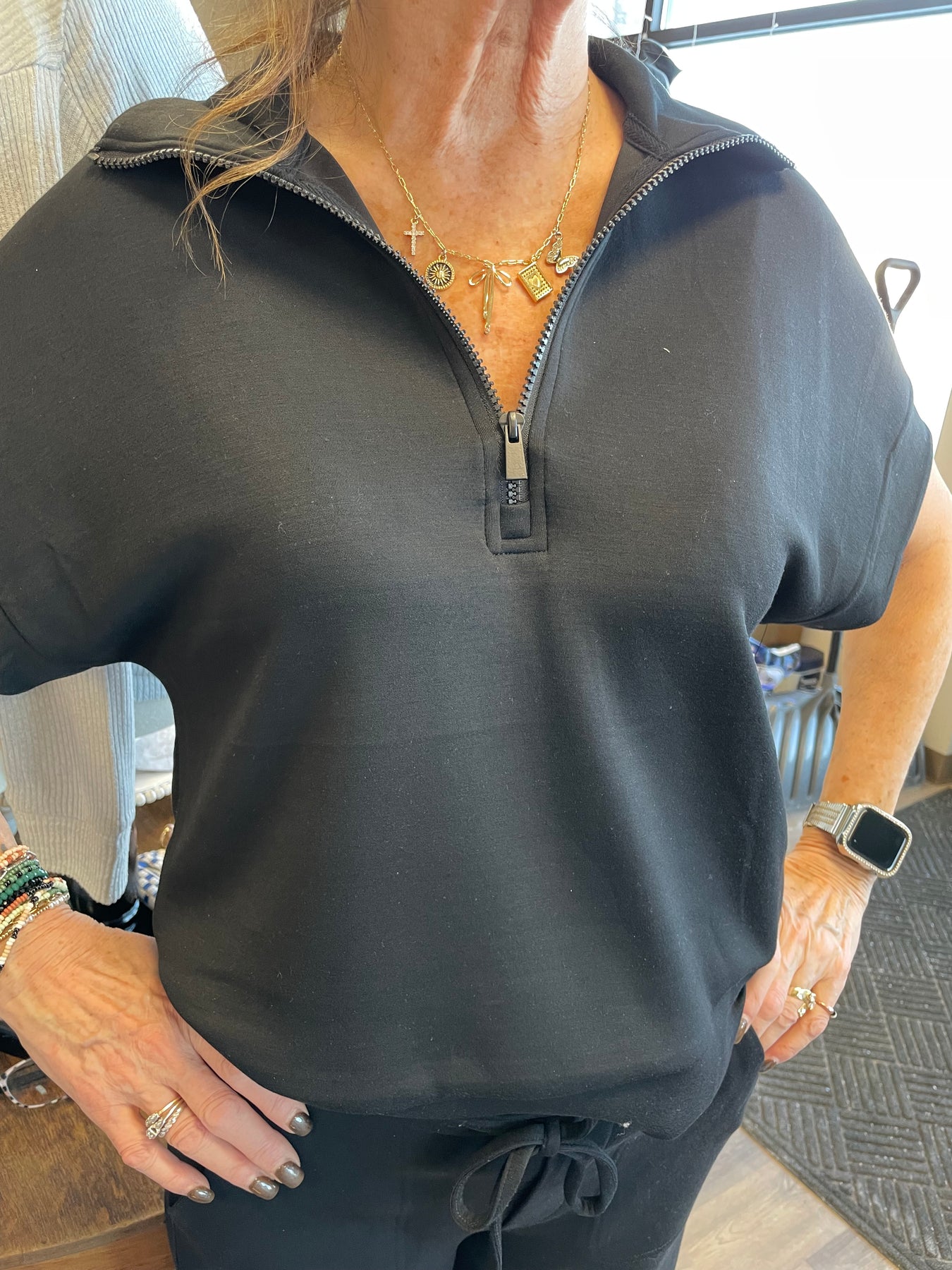 Elevate your everyday with this sleek half-zip pullover crafted from premium luxury-modal fabric that feels as good as it looks. The timeless black colorway pairs effortlessly with any wardrobe, while the refined half-zip design adds just the right touch of sophistication and versatility. Whether you're layering for cooler days or reaching for weekend comfort, this pullover delivers that coveted blend of polish and ease. A wardrobe essential that works as hard as you do—minus the effort.