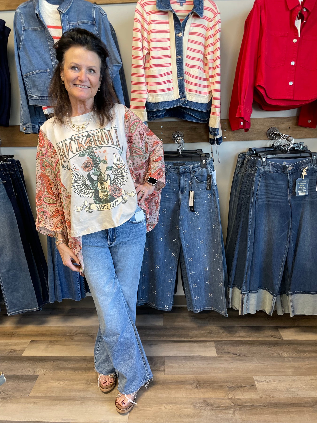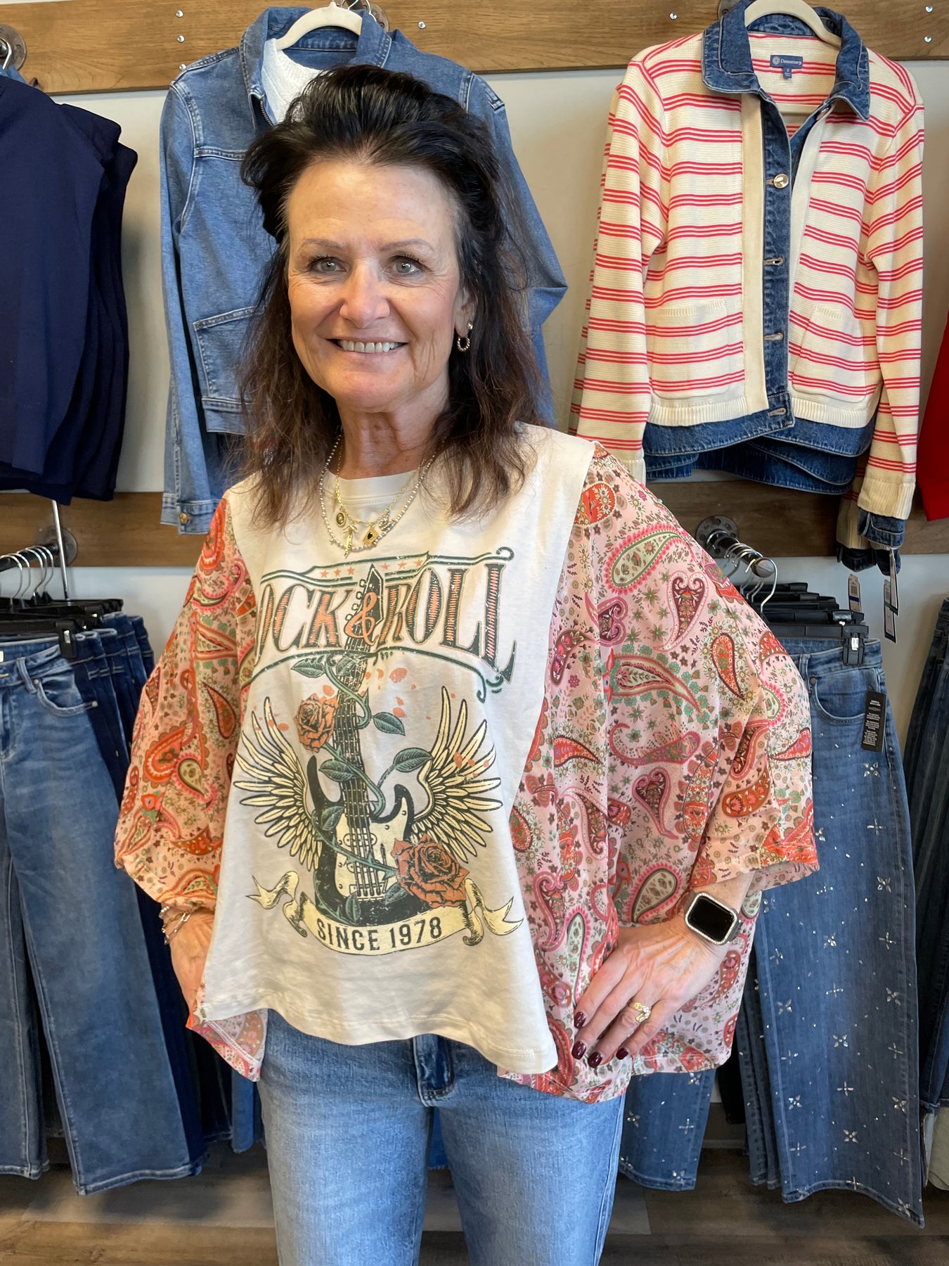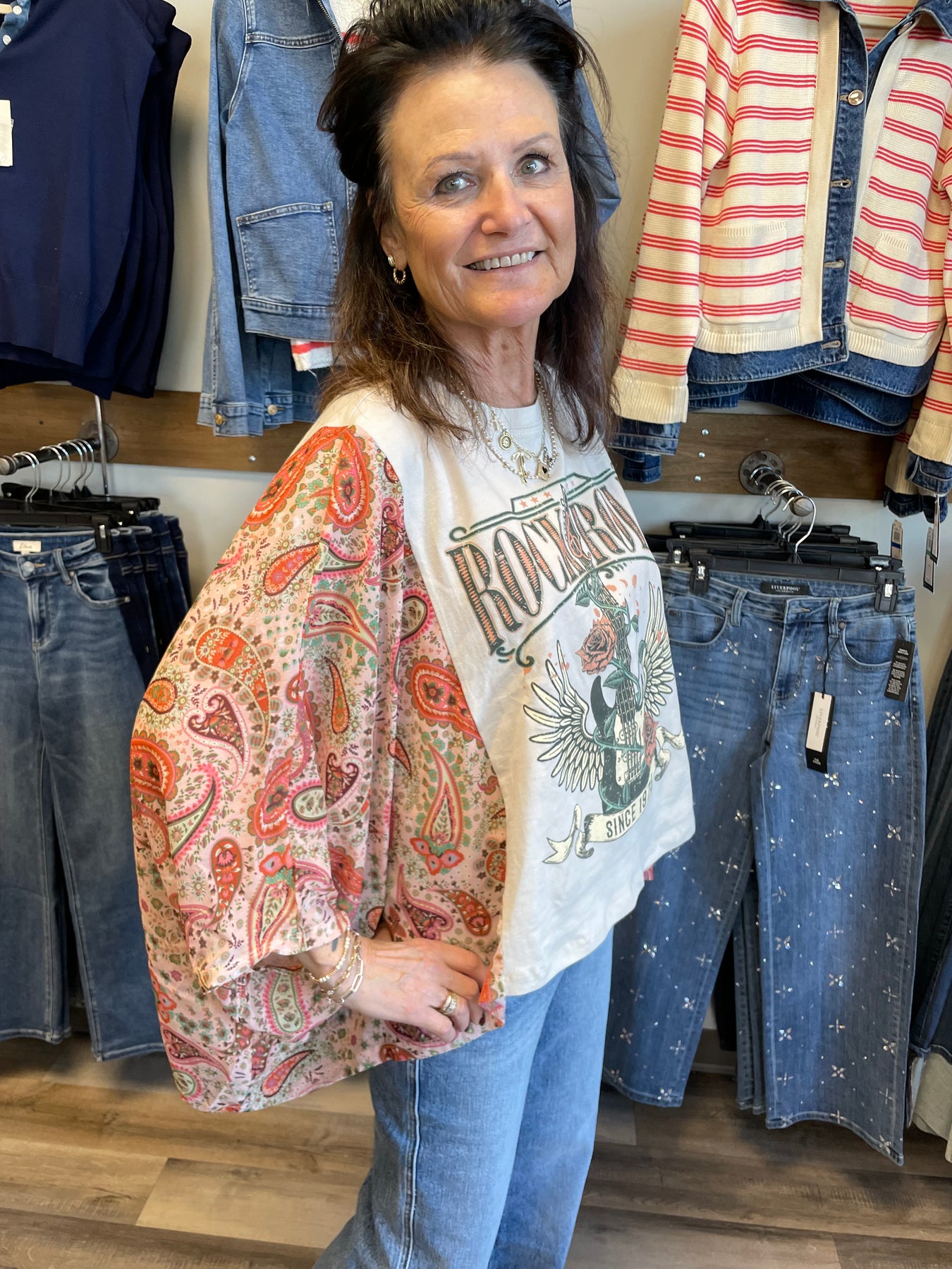 The ROCK N ROLL KAFTAN TEE in Bone features a new and upgraded graphic, enhancing visual appeal and contemporary style. Crafted for comfort, this tee is ideal for casual wear while providing optimal breathability. Its design combines aesthetic and functionality, suitable for various settings.